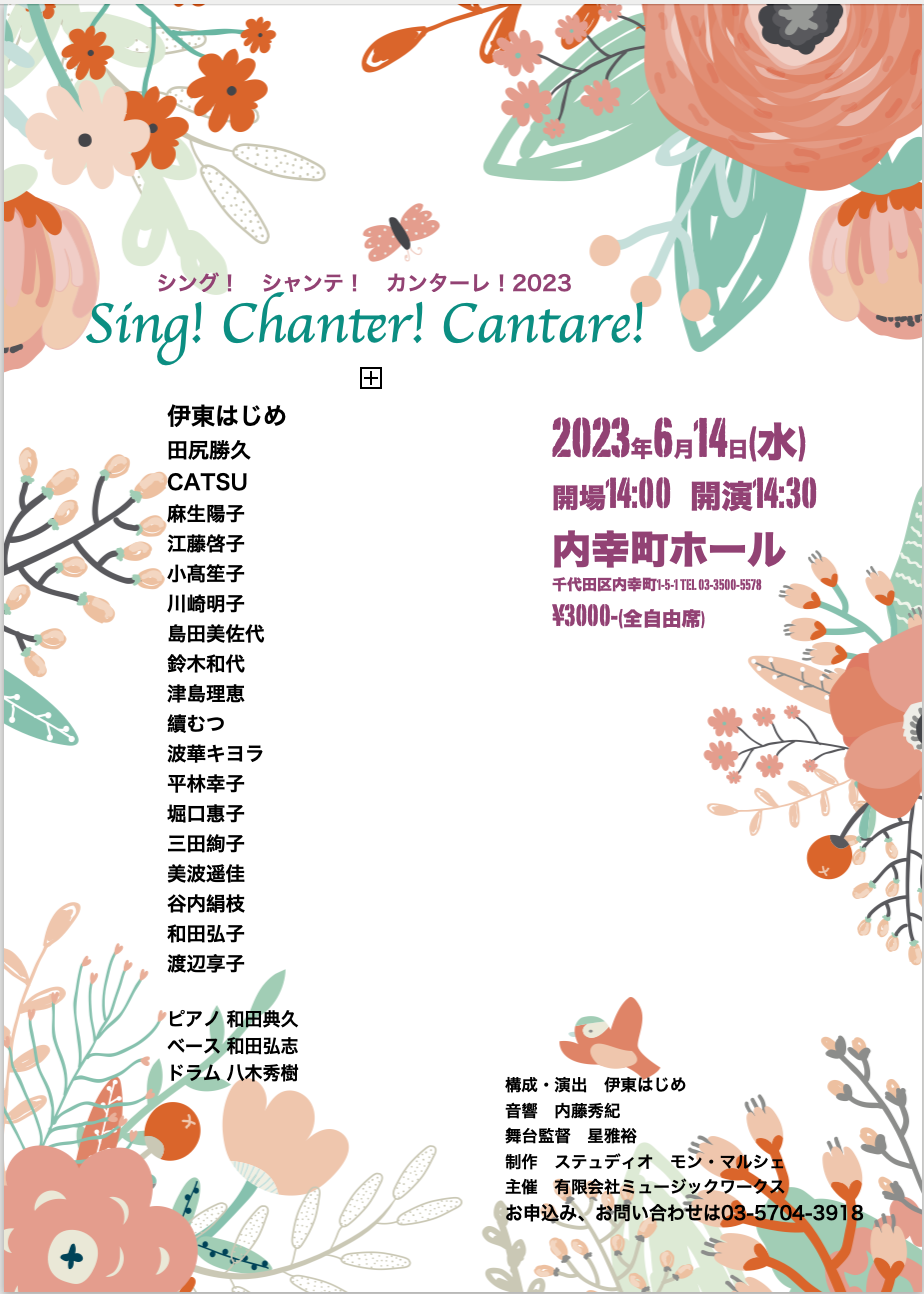 2021年4月1日(木)『シャンテ オ・プランタン』春に歌う!