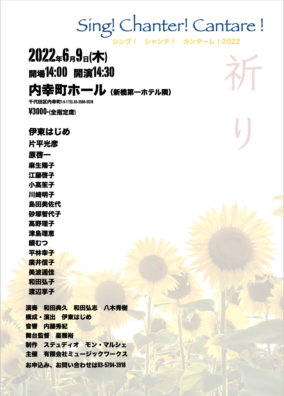 2022年6月9日(木)『シング・シャンテ・カンターレ』〜 祈り